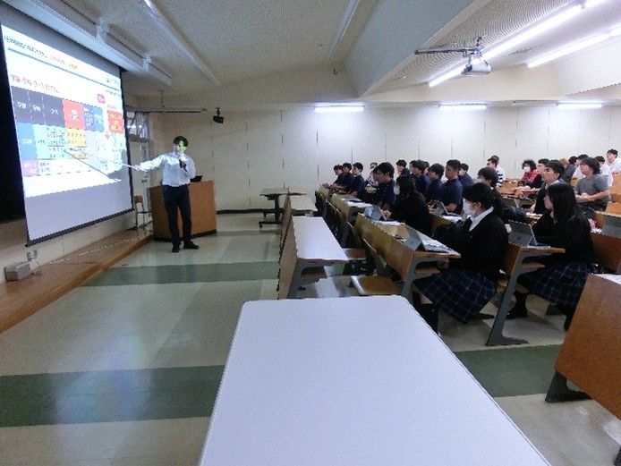 令和7年9月から令和8年1月までの概ね毎週金曜日、八戸工業大学にて本校生徒希望者10名(文系・理系問わず)が科目等履修生または聴講生として、大学生と共に「カーボンニュートラル入門」を受講しています。高校生の興味・関心・視野を広げ、将来の進路選択に役立てたり、高等教育の一端に触れ、大学での学問の学び方を体験し進学後の円滑な大学生活の一助とすることを目的に実施されています。地球規模の問題解決に必要なカーボンニュートラルについて工学分野から考えられることは何なのか、解決の視点をいろいろな側面から学んでいます。